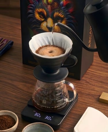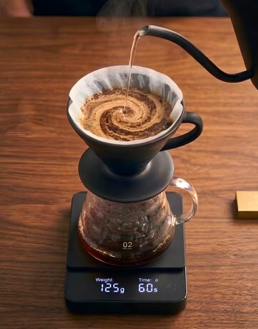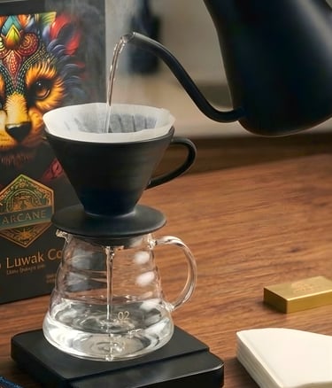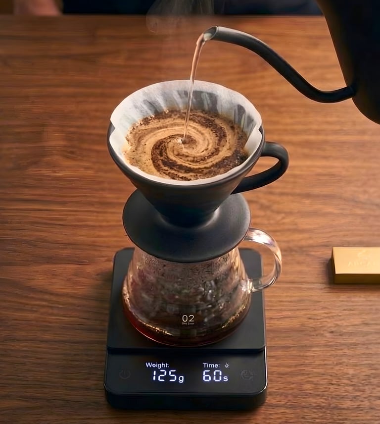 Equipment: V60 dripper, paper filter, carafe, and a gooseneck kettle.