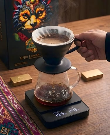 Remove the dripper, gently swirl the carafe to open up the aroma, and pour. Let it rest for a moment before drinking, this allows the coffee to settle and fully express itself.
